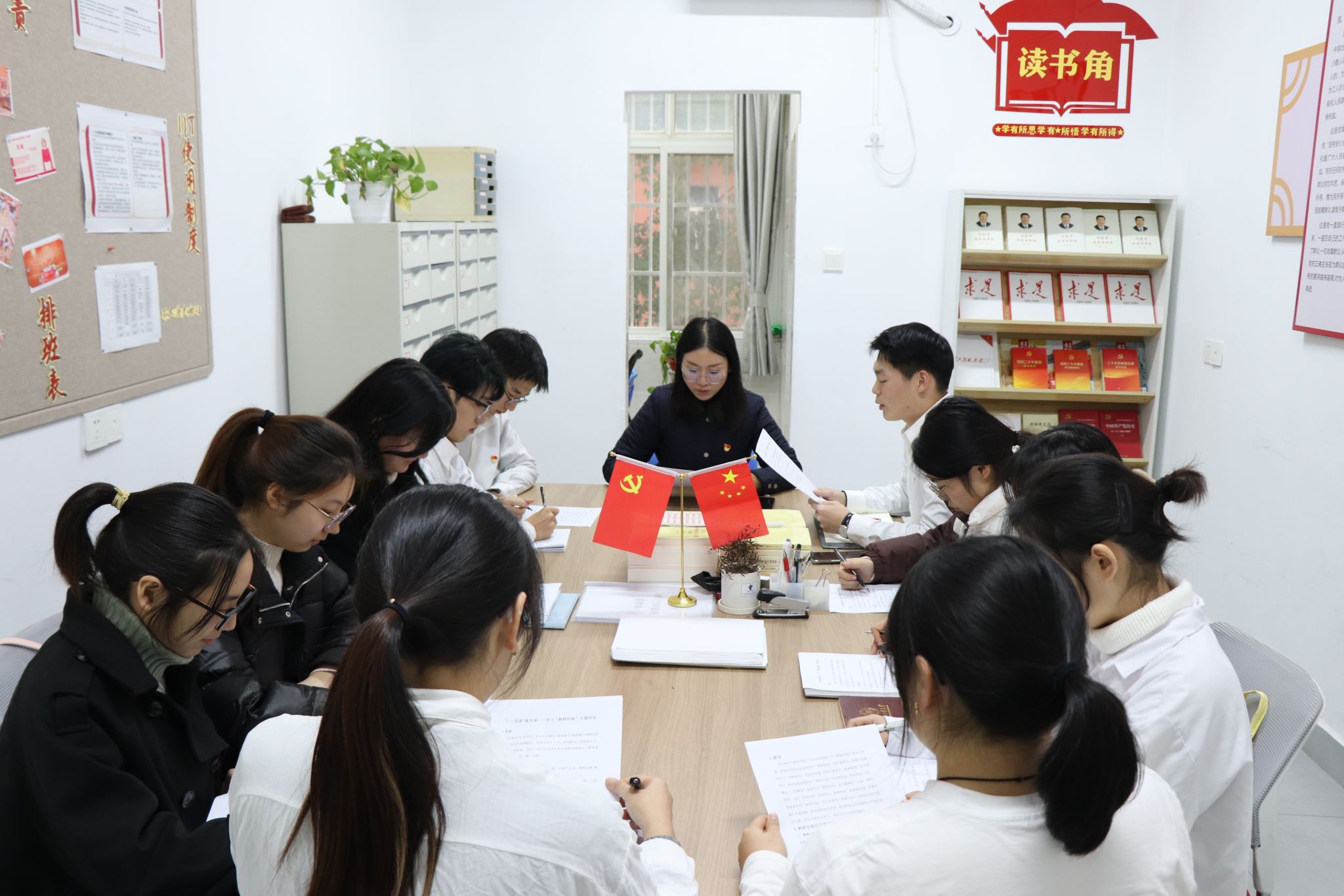 主题活动结束后,林蕾带领支部党员在研习空间内审核全体积极分子、党员等各项纸质材料,并共同回顾了这一年的学生支部工作情况。