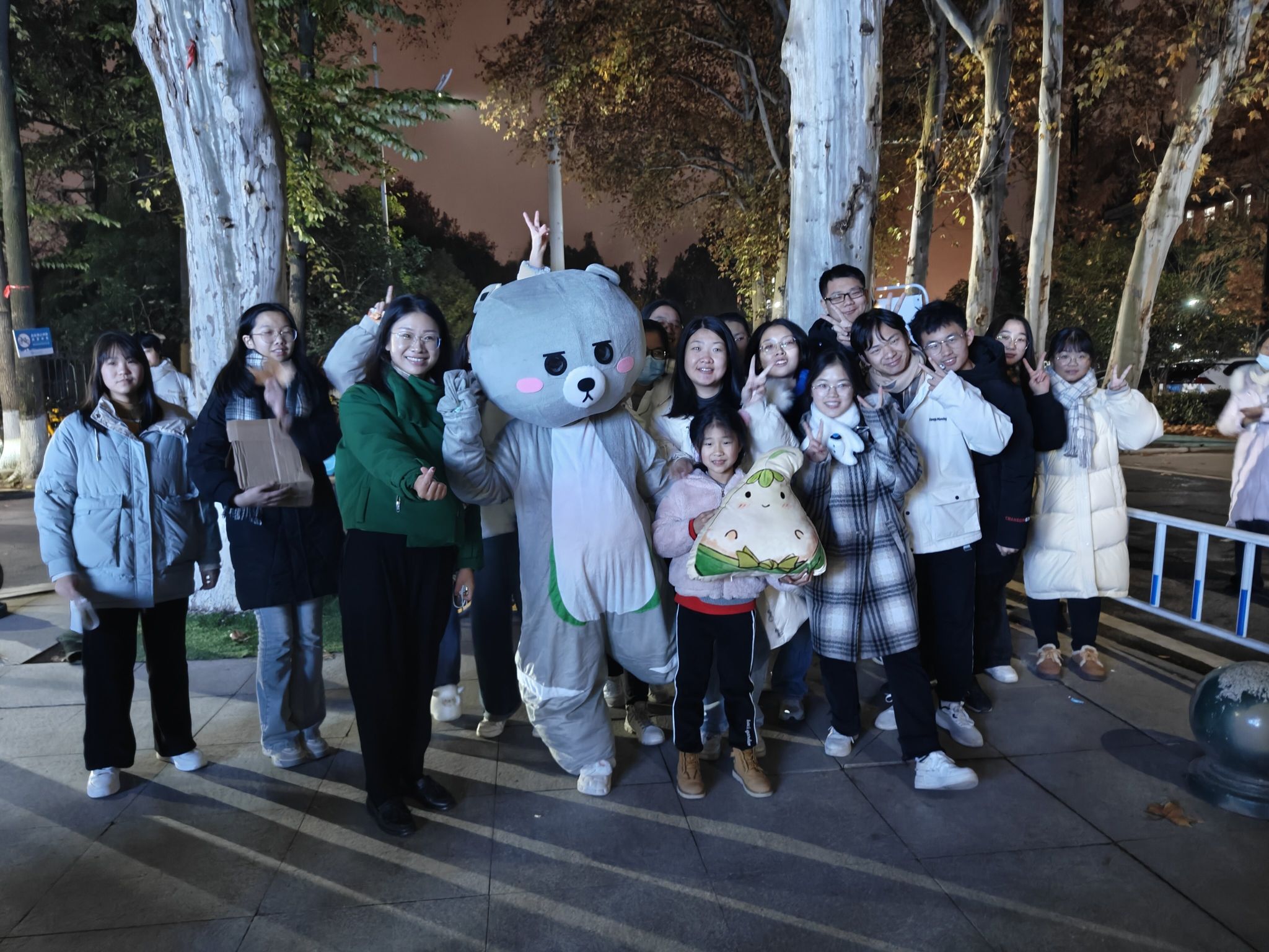 “在这寒冷的夜晚,在宿舍楼下拥抱了咱们学院的小熊,瞬间感觉到暖心的鼓励,我今年也会加油,希望一‘研’为定!”20食品3的王睿同学说道。