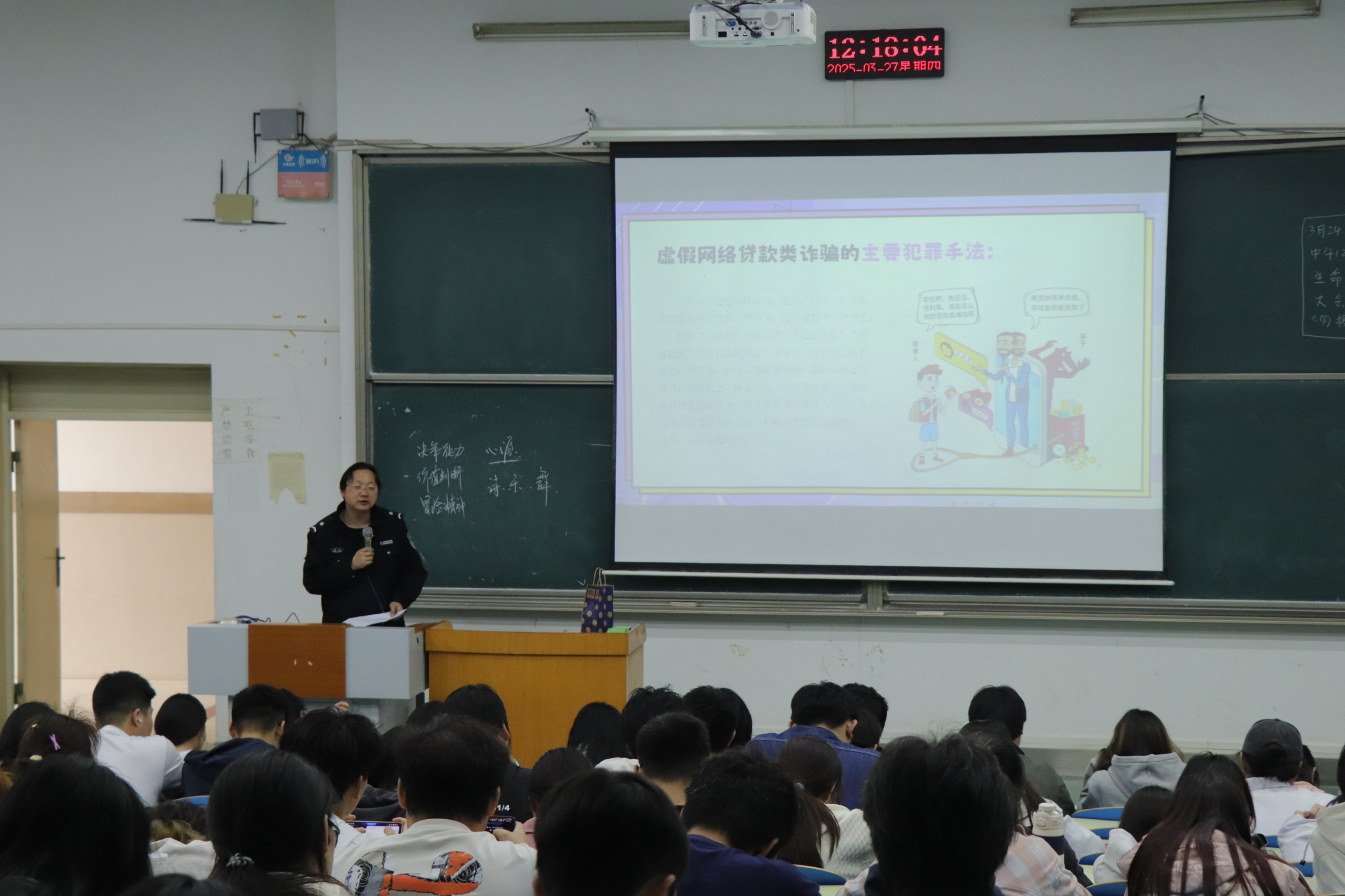 3月27日,学院联合南湖派出所举办“网格员安全素养提升培训会”,邀请派出所郭峰警官担任主讲。培训聚焦校园安全隐患排查、突发事件应急处置、电信诈骗防范等主题,通过案例分析、模拟演练等方式,提升学生网格员队伍的责任意识和实务能力。郭警官强调:“网格员是校园安全的前哨,要以‘隐患早发现、问题早介入’为目标,筑牢安全防线。”参训学生代表、来自学院生活部的刘奕煊同学表示:“将切实发挥‘桥梁纽带’作用,协助学院织密安全防护网。”