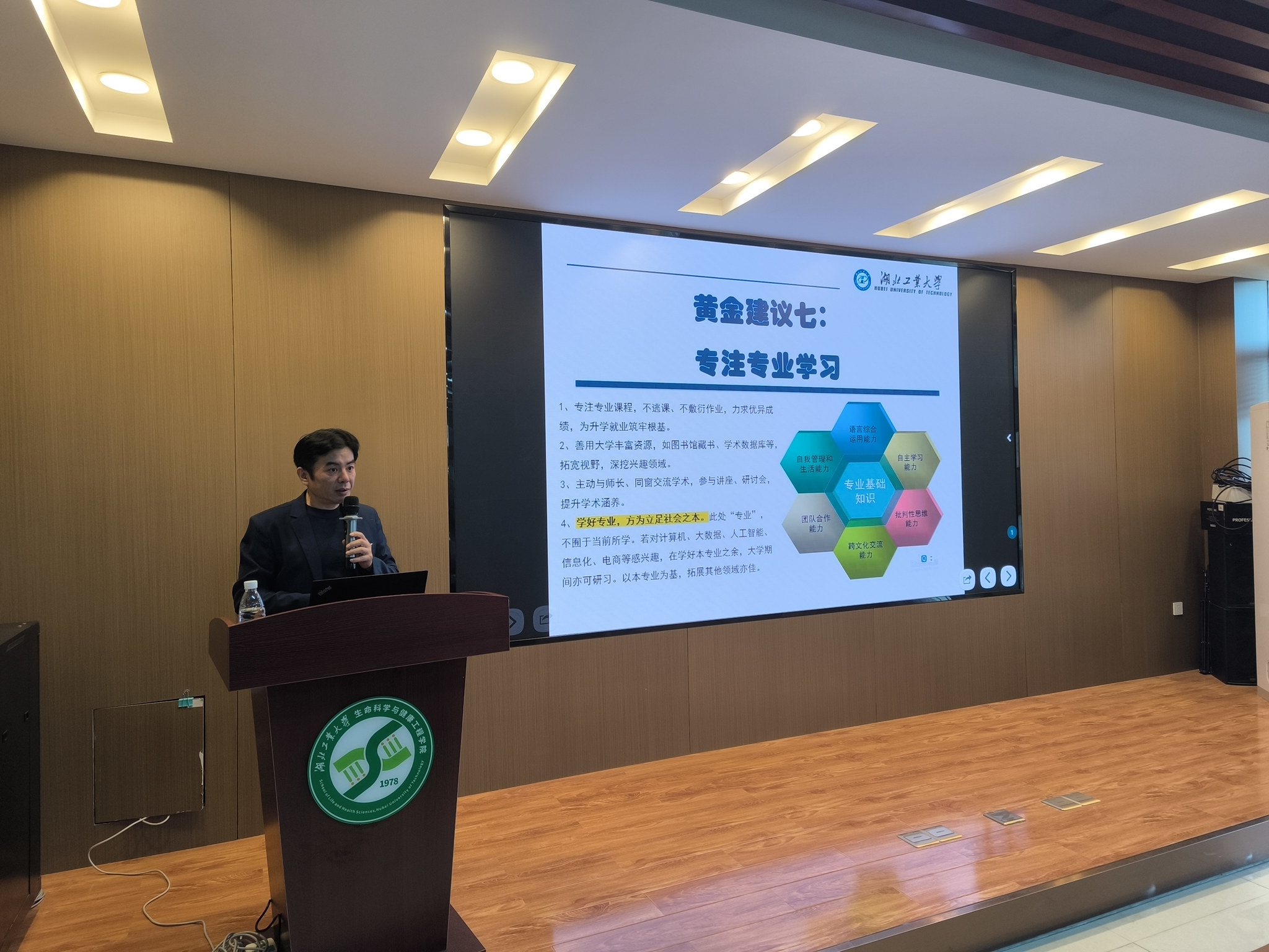 梅林锋校友以“大学生活黄金建议”为开端,结合自身从湖工大学子到多家科技企业创始人的成长轨迹,回顾了27年前自己从黄梅农村踏入湖工校园的求学经历,从“普通话不流利”到创办科技企业的奋斗历程,鼓励同学们珍惜校园生活的每一天。