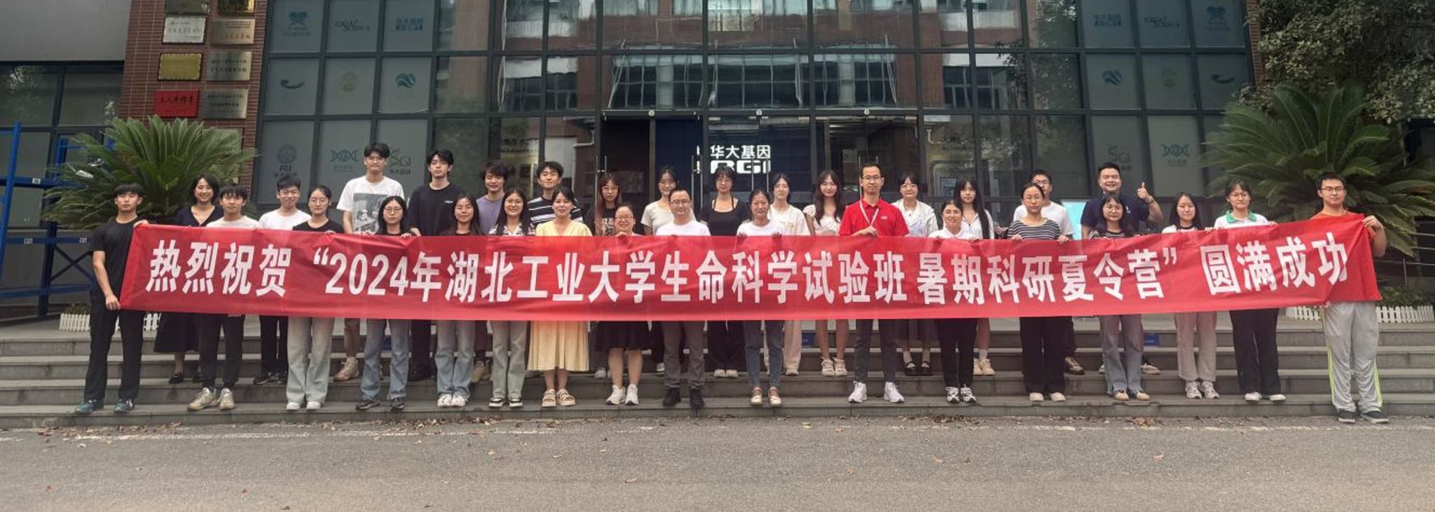 7月8日至12日, 湖北工业大学生命科学与健康工程学院与武汉华大基因共同主办了“2024年湖北工业大学生命科学暑期夏令营”(总第二期), 23级生命科学拔尖人才培养试验班的全体24名同学,在位于光谷生物城的华大基因武汉研究院开展了形式多样、内容丰富的夏令营活动,包括专题讲座、实验技能培训和专业实验室参观、分组学习等。