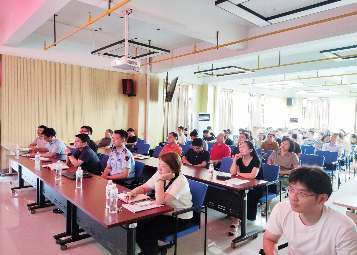 会上,俞永保处长首先就近几年来发生的校园火灾典型案例成因进行详细分析,然后重点解读了湖北工业大学实验室安全管理系列制度,并结合学院实验室运行与管理实际情况,提出了学院在日常管理中需要注意的重点工作,号召全体师生提高自身安全意识,牢守安全底线,为自己和他人的安全负责。随后,扈警官围绕火灾的特点、预防火灾的基本常识、日常用电用气用火安全和不同类型火情处置方式等内容进行讲解,并结合学院实验室特点,就人员疏散、自救逃生、灭火器的正确使用方法进行介绍,引导教育师生们牢固树立消防安全意识,对安全隐患做到处处留心、时刻警惕。
