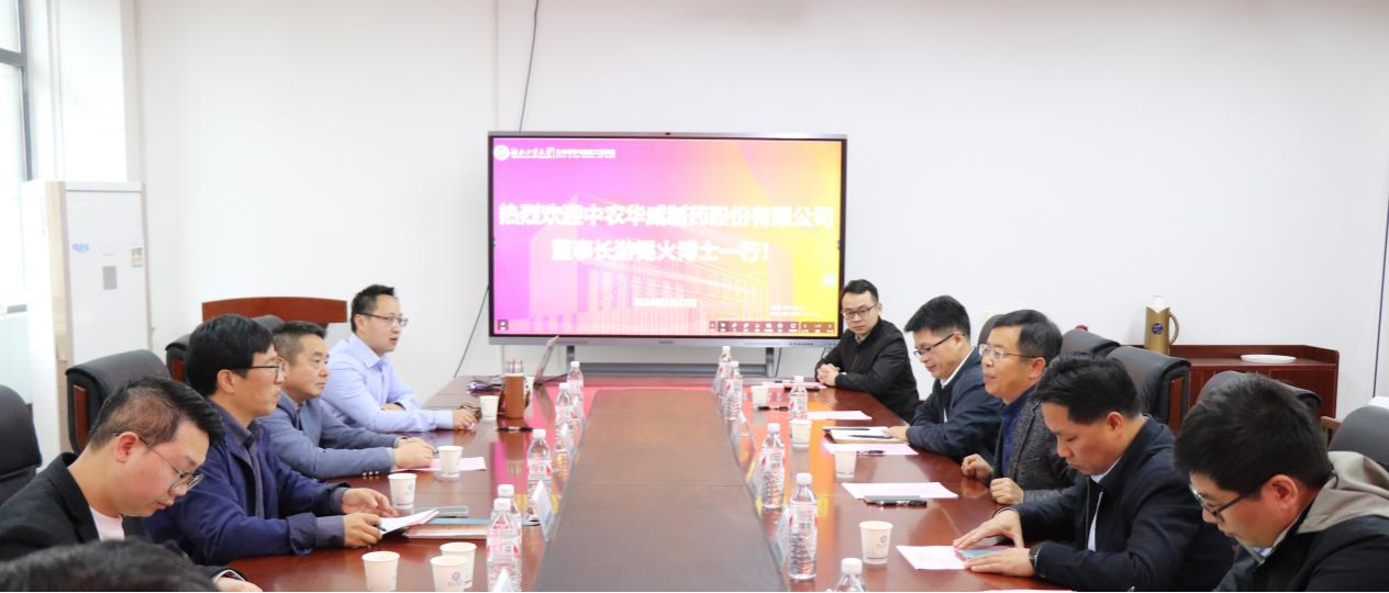 3月27日上午,中农华威制药股份有限公司董事长游锡火一行应邀到校进行产学研合作座谈交流。湖北工业大学党委常委、副校长陈自才,科学发展研究院院长胡心彬、生命学院领导班子出席了会议。会议由生命学院党委书记王辉主持。