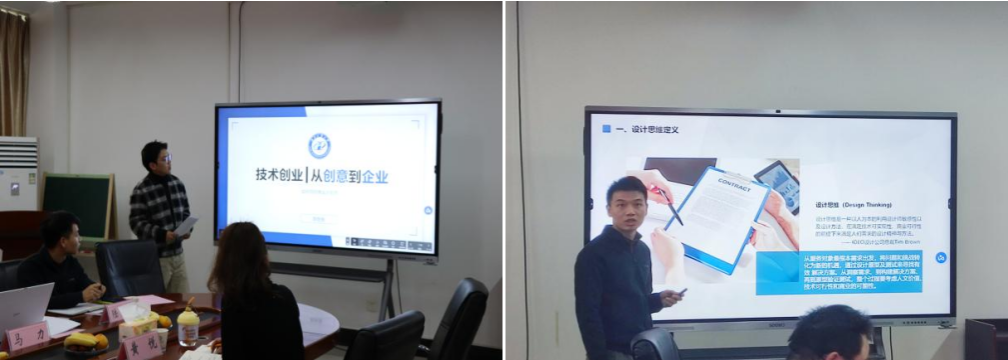 在交流分享会上,两位研究生辅导员分别进行了交流展示。来自计算机院的苏世良老师围绕商业计划书的概念与用途,罗列了撰写计划书的注意事项;来自理学院的陆鹏老师从设计思维的定义出发,介绍了设计思维的五大步骤。两位辅导员老师的精彩展示丰富了活动的教育意义,为创新创业与就业课程的开展提供了新思路。