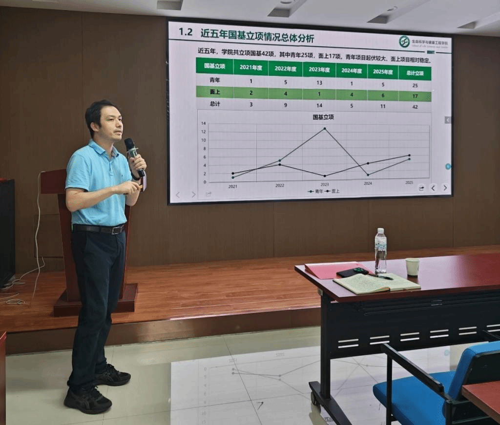 启动会上,学校科发院代表刘瑾主任介绍了学校国家自然科学基金申报整体情况,并对生命学院在基金组织申报方面的工作成效予以肯定,鼓励教师积极开展跨学科交流,互学互鉴,共同提升。周梦舟从工作总结、问题分析与推进举措三个方面,汇报了学院基金工作的进展与下一步计划。