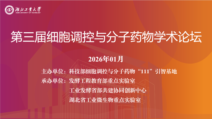 2026年1月,湖北工业大学第三届“细胞调控与分子药物”学术论坛在湖北工业大学生命学院学术报告厅隆重举行。本届论坛先后邀请了国家杰青、南方科技大学生命科学学院饶枫教授,国家杰青、中国科学院动物研究赵建国研究员,国家杰青、中山大学肿瘤防治中心康铁邦教授,国家杰青、北京大学基础医学院赵颖教授,国家杰青、中国科学院生物物理研究所纪伟研究员来生命科学与健康工程学院进行学术交流。本次学术论坛主持人为湖北工业大学校党委常委、副校长唐景峰教授,生命科学与健康工程学院教师及研究生共600余人次参与了本次报告会。