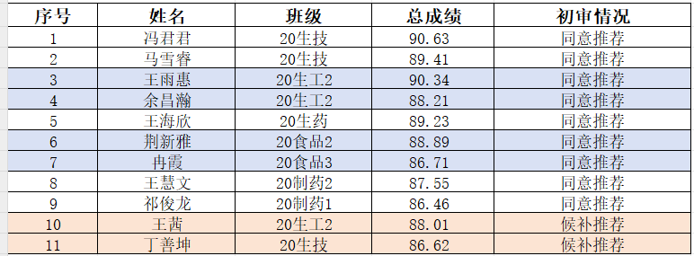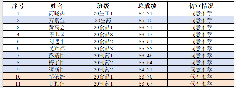 根据学校《关于做好推荐2024届优秀本科毕业生免试攻读硕士研究生的通知》和《关于生物工程与食品学院推荐优秀2024届本科毕业生免试攻读研究生的实施方案》,经学生本人申请,学院推免生遴选工作小组对材料进行审核,现将结果予以公示。