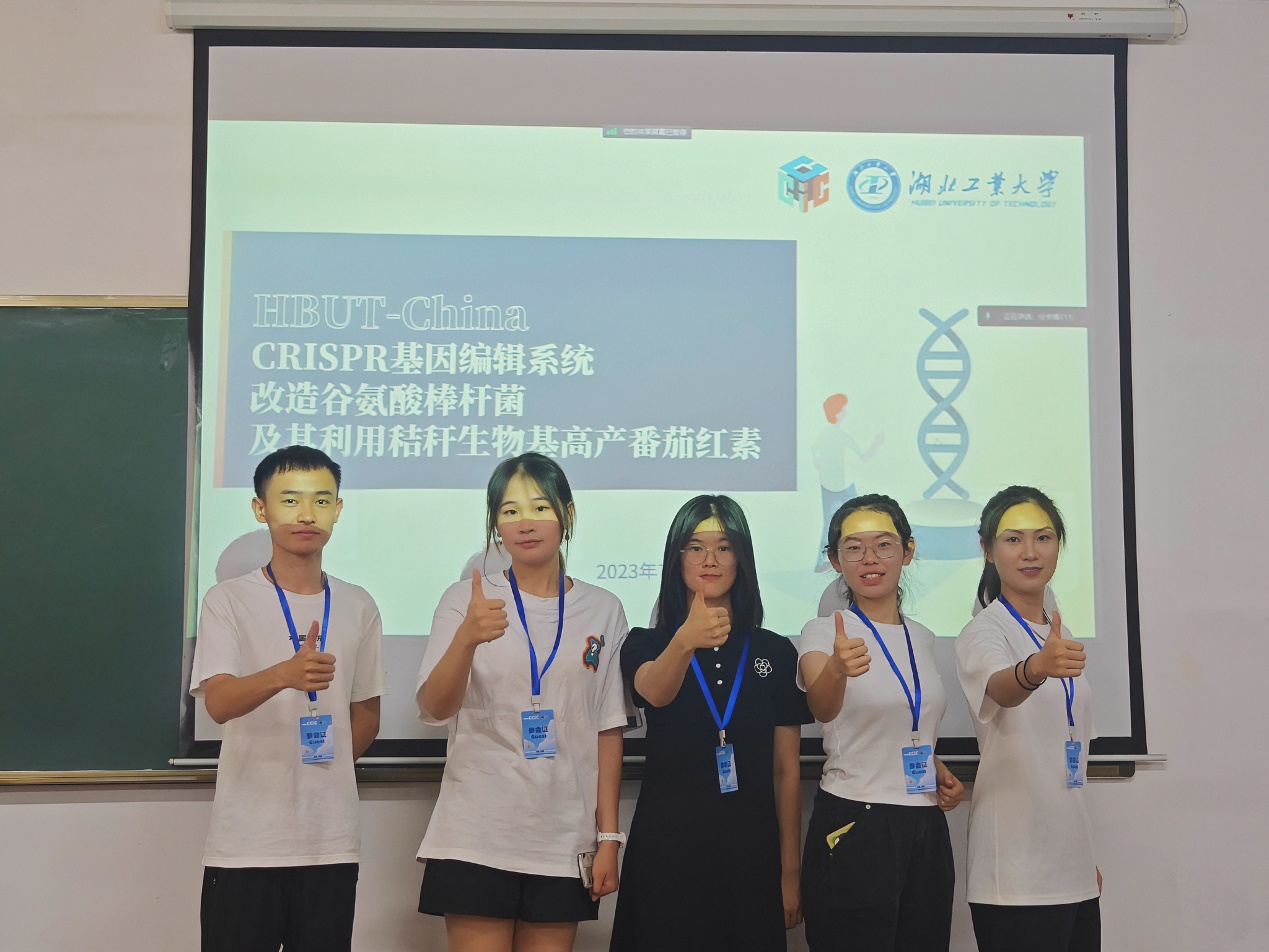 HBUT-China队项目的名称为“CRISPR基因编辑系统改造谷氨酸棒杆菌及其利用秸秆生物基高产番茄红素”。项目通过酶解法处理秸秆,将秸秆转化为糖平台供工程菌谷氨酸棒杆菌使用,实现低附加值产品转化为高附加值产品,实现秸秆的高效利用。谷氨酸棒状杆菌作为一种可以产生复杂萜类化合物的底盘微生物,在生产番茄红素上相较于其他工程菌株具有优势,被选为本项目中的优良工程菌株。通过构建CRISPR-Cas12a基因编辑系统对谷氨酸棒状杆菌合成萜类化合物途径的优化和改造,敲除或过表达部分基因,以实现谷氨酸棒杆菌对番茄红素的定向高效生产。此项目技术可以解决秸秆利用不当带来的环境问题,减少环境污染,实现绿色工业化;将秸秆资源转化为糖平台,可以减少生物合成对粮食作物的依赖,拓展了生物合成的原料来源;同时项目具有工业化前景,更多人可以受益于番茄红素的优良特性。