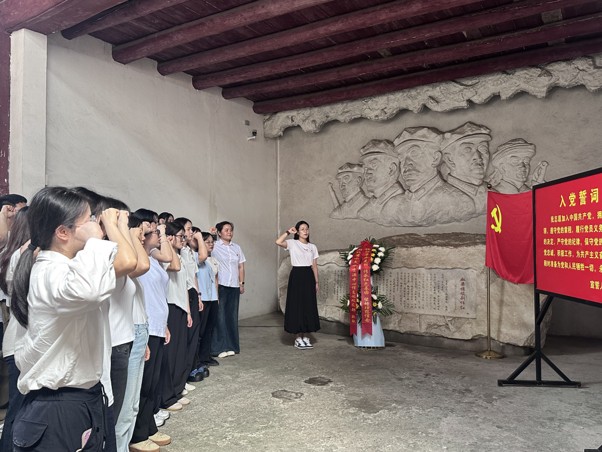 在红三军团建军纪念馆,党员同志们整齐列队,面对鲜红的党旗,高举右拳,举行了庄严的宣誓仪式,重温入党誓词,用慷慨激昂的宣誓声表达了对革命先烈的缅怀之情和为共产主义事业奋斗终生的决心。
